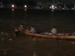 เห็นเรือพายกรายมาแถวท่าน้ำ