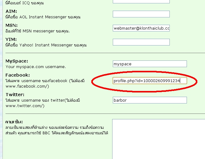 ผู้เขียน | หัวข้อ: วิธีเพิ่มข้อมูล facebook , twitter ในส่วน profile (อ่าน 36133 ครั้ง) |