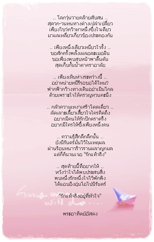 "คงจะมีรักจริงรออยู่  ที่ดินแดนใดสักแห่ง"