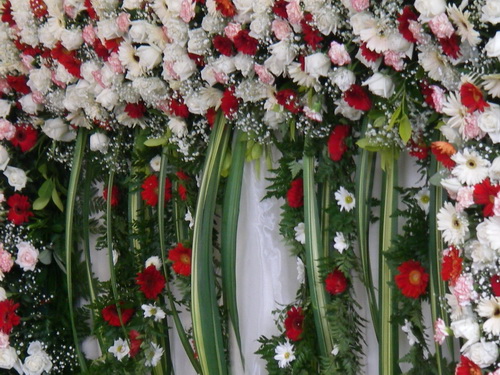 งานเลี้ยงแสนอลังการทีมงานสร้าง    ดอกไม้คัดจัดวางอย่างเหมาะสม